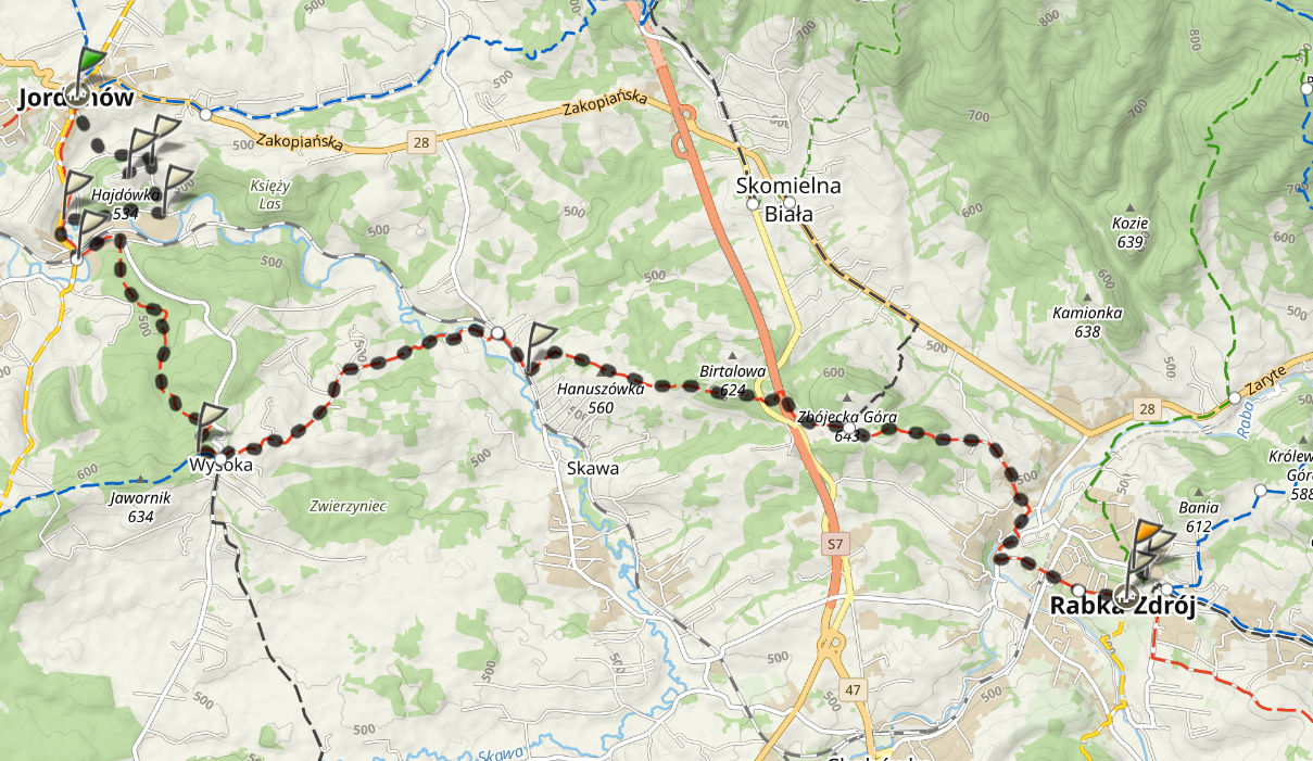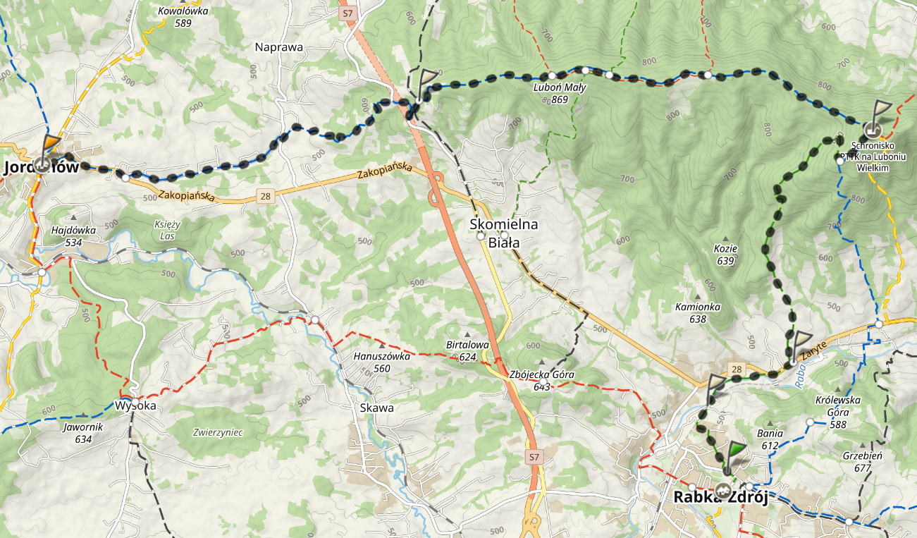 Kolejny weekend zaplanowany. Jutro ruszam z Tomkiem do Rabki skąd w sobotę uderzymy przez Luboń Wielki i Luboń Mały do Jordanowa. Tam nocleg w jordanowskiej Galerii. Dzień drugi czyli niedziela to powrót do Rabki Głównym Szlakiem Beskidzkim. Oby pogoda i humory dopisały ! Poniżej screeny z zaplanowanych odcinków.