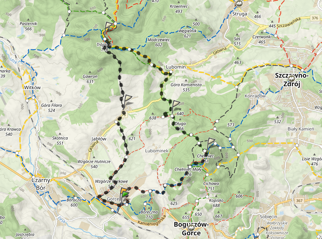 Niedziela zaś przeznaczona będzie na pętlę w Górach Wałbrzyskich. Będzie coś dla Tomka, ponieważ na Chełmcu zakończy zdobywanie Korony Gór Polski. A dla mnie? Kolejne zwiedzone niszowe tereny polskich gór i wyżyn. Poniżej niedzielny plan.