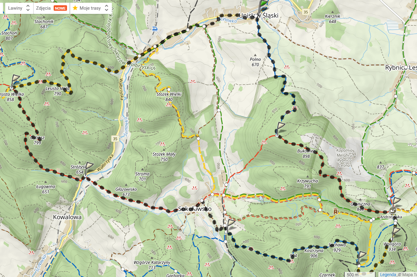 W Górach Kamiennych byłem tylko raz, po to aby klepnąć szczyt Waligóry przy okazji zaliczania Korony Gór Polski. Była to bardzo krótka trasa, bowiem startowałem i finiszowałem w Schronisku PTTK Andrzejówka. Tym razem chęci są na nieco głębszą penetrację tamtejszych okolic. Poniżej sobotni plan, który rzecz jasna może ulec pewnym modyfikacjom.